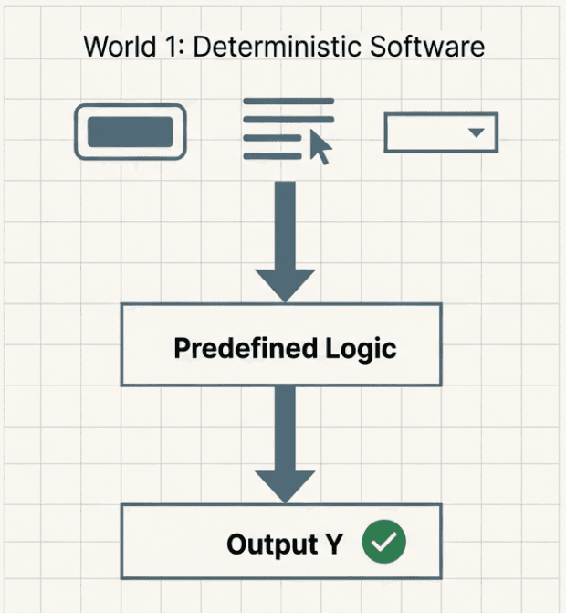 Most of us have spent our careers working with traditional software products. In those systems, the number of actions a user can perform is usually limited. Users click buttons, fill out forms, upload a photo, submit a request, or complete a predefined flow. In most cases, both the input and the expected output are known ahead of time. If a user uploads a photo, the system should store it. If they submit a form, the backend should validate and process it. The code is written to explicitly enforce these expectations.
